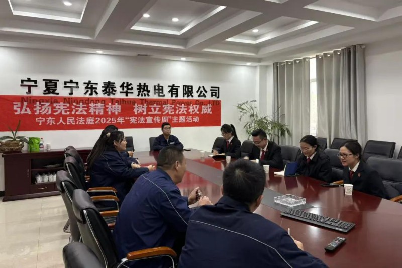 灵武市人民法院干警走进宝廷新材料有限公司和宁东泰华热电有限公司,开展“弘扬宪法精神 树立宪法权威”主题活动,通过座谈交流、案例剖析、法治“体检”等形式,围绕与企业经营密切相关的劳动法、安全生产法、知识产权法等法律法规进行宣讲,帮助企业明晰法律边界、防范经营风险、规范用工管理,引导企业进一步筑牢法治意识。