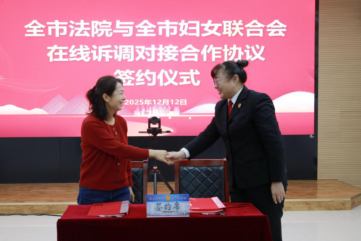 会上,石嘴山市两级法院分别与市、县(区)妇联签署了《涉婚姻家庭及妇女儿童合法权益保护领域民事纠纷“总对总”在线诉调对接合作协议》,约定通过“线上+线下”相结合方式开展调解、申请司法确认、制作调解书等工作,全面提升婚姻家庭纠纷调解工作的质量和效率。