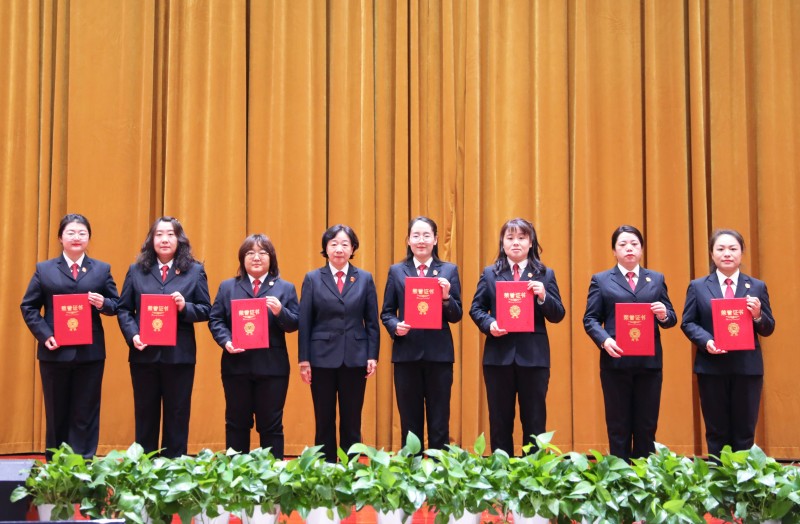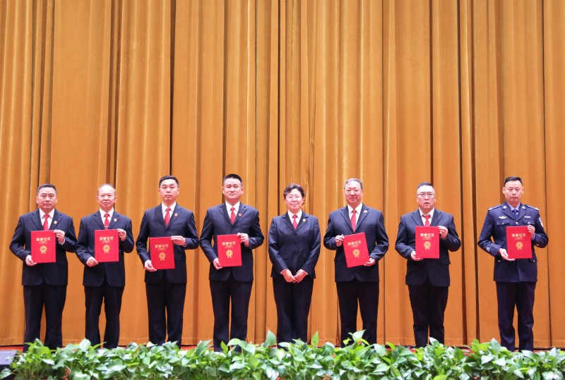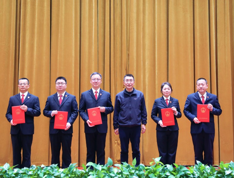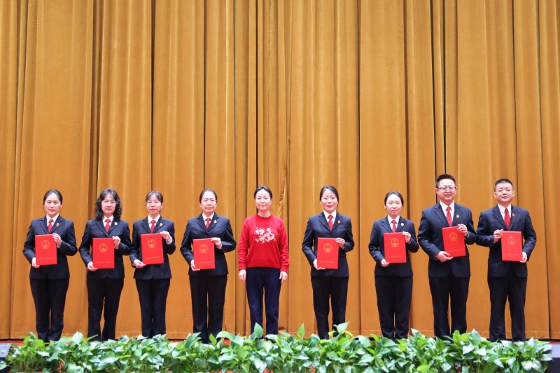 会上,表彰了高院机关2025年度工作成绩突出的集体和个人、优秀公务员,为在法院工作满30年的干警颁发了荣誉天平纪念章。