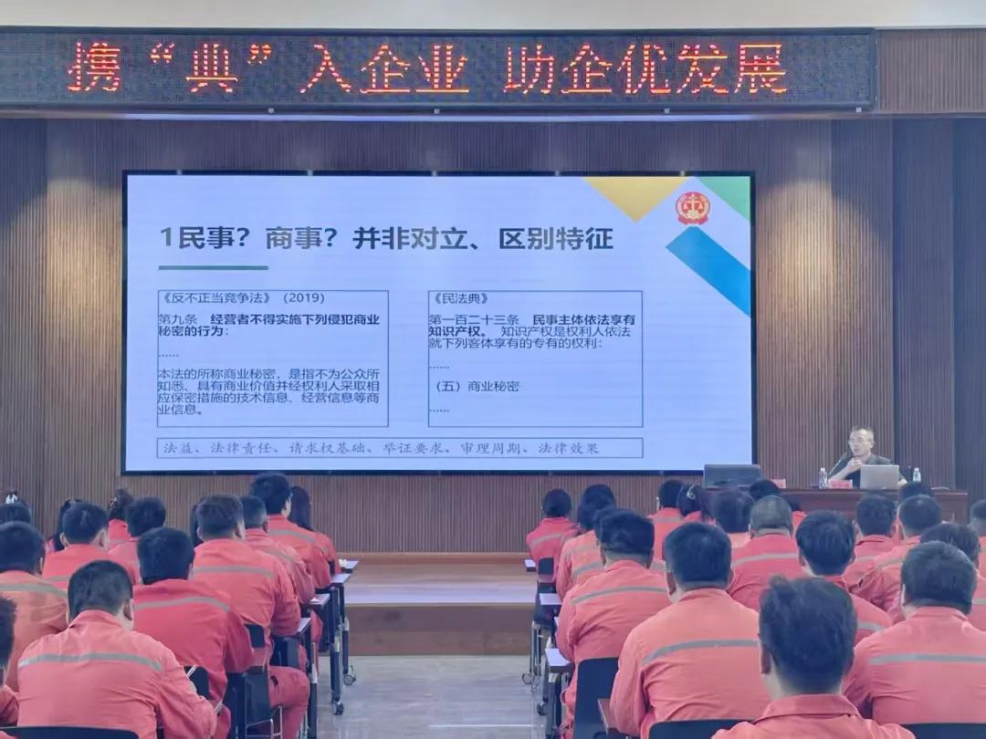 银川中院民三庭法官助理邢世荣以商业秘密保护为主题,结合化工行业特点,通过典型案例剖析、风险提示等方式,为企业代表和职工重点讲解了企业商业秘密保护、职工个人发展等内容。灵武市法院宁东法庭副庭长李华为公司员工讲解了婚姻家事典型案例,并为现场职工提供了“一对一”的法律咨询服务。