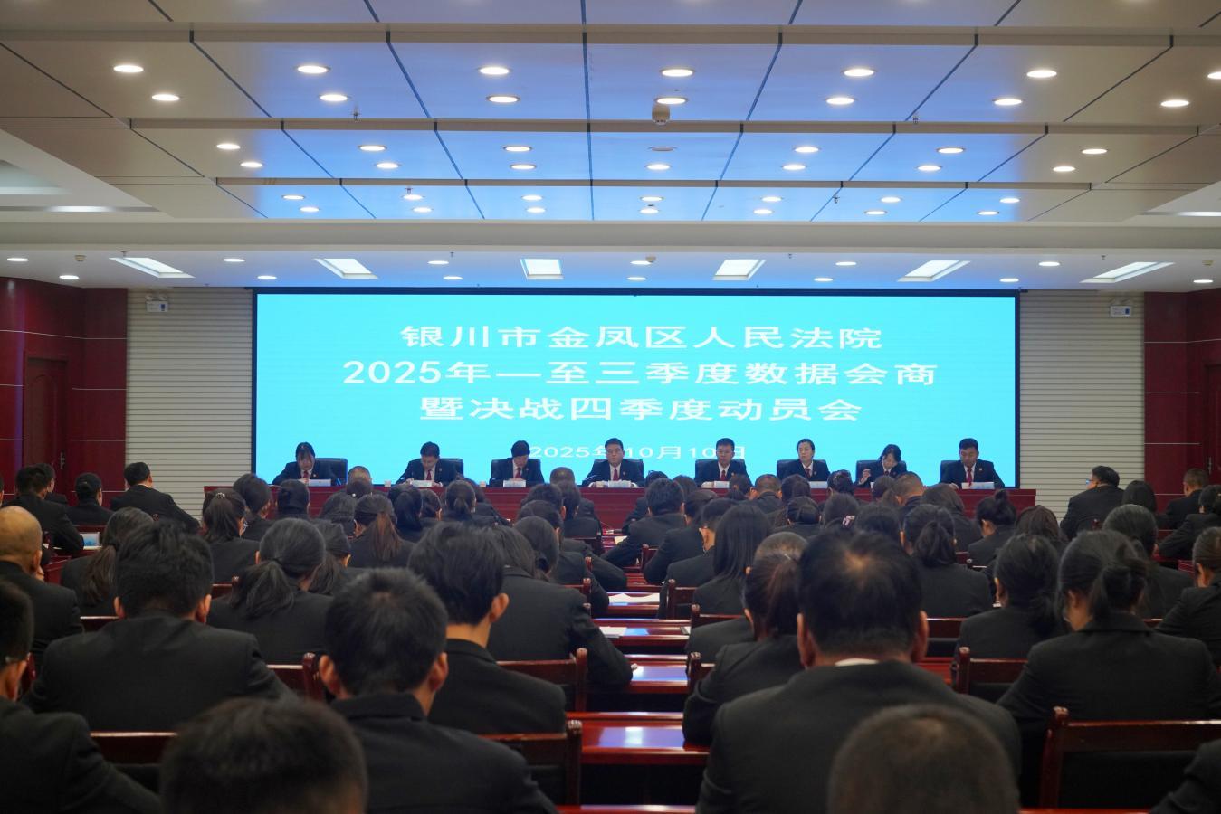 本网讯(刘 蕾)近日,银川市金凤区人民法院召开2025年一至三季度数据会商暨决战四季度动员会,分析研判前三季度审判执行质效态势,以数据为切口、以问题为导向、以会商为抓手,深度“体检”,全面“会诊”,部署决战决胜四季度工作。