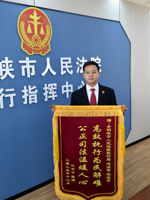 本网讯(胡瑞林)近日,青铜峡市人民法院执行干警收到了一份特殊的快递——一面锦旗和一封手写感谢信,锦旗上“高效执行为民解难 公正司法温暖人心”的字样格外醒目。