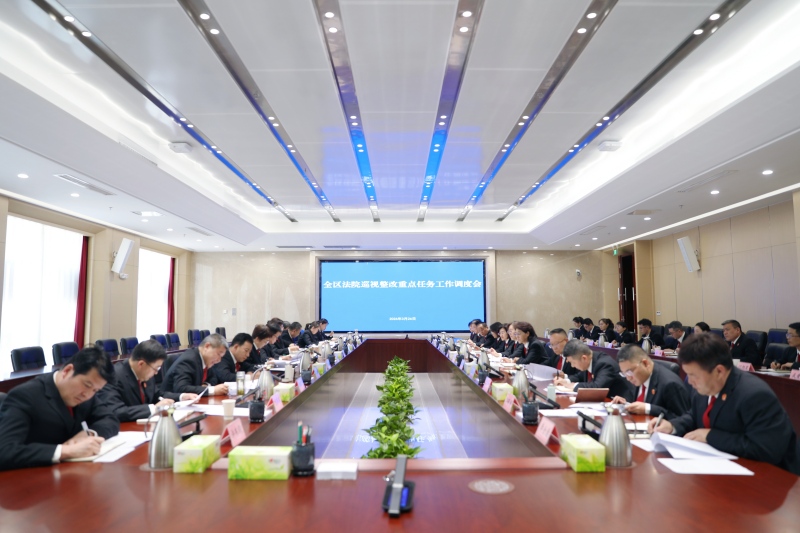 本网讯(苏蓓蓓)3月26日下午,自治区高级人民法院召开了全区法院巡视整改重点任务工作调度会,对标自治区党委第五巡视组反馈意见整改要求,梳理诉讼费退付、积案清理、审判流程监督管理等重点任务推进落实情况,进一步统一思想、凝聚共识,推进解决突出问题,促推整体工作提质增效。