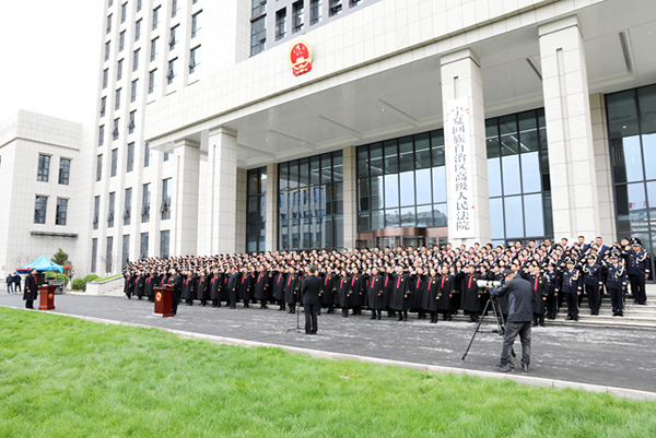 会前,自治区高院举行升国旗暨宪法宣誓仪式。