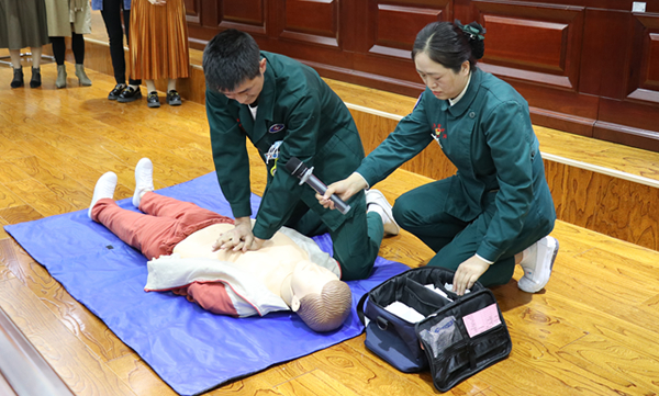 讲座中,董伟医生用通俗易懂的话语讲述了什么是情绪、情绪管理的重要性、情绪与健康的关系,指出了生活中普遍存在影响情绪的事件,并结合法院工作实际,提出如何运用科学、行之有效的方法疏导情绪、释放压力,缓解情绪问题,合理解决情绪给大家带来的困扰。常英娥护士长等医护人员现场演示了心肺复苏、海姆立克急救法,详细地讲解了紧急救护的要领和相关健康知识。与会干警积极参与体验和互动,现场气氛活跃。