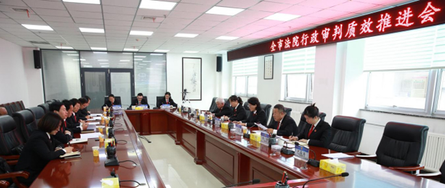 审委会专职委员李学文主持会议,各县区法院分管院领导、行政庭庭长及中院行政庭全体干警参加会议。