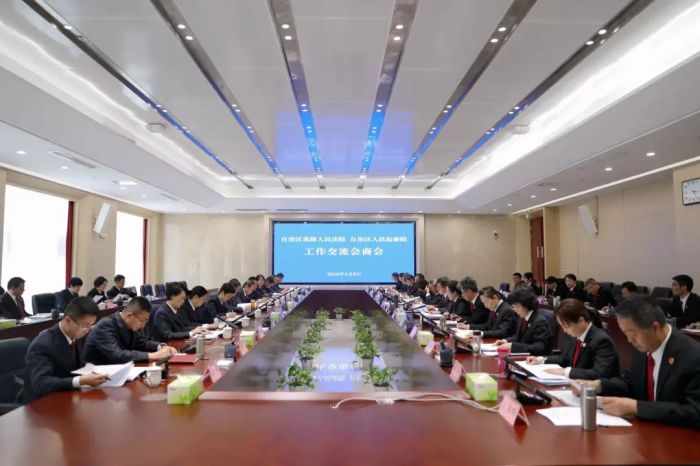 4月8日,自治区高级人民法院、自治区人民检察院召开首次工作交流会商会,深入践行习近平法治思想,认真落实两高工作交流会商会议精神,推动建立常态化会商机制,携手开启宁夏法检“两院”协同履职新篇章。自治区高级人民法院、自治区人民检察院主要负责人出席会议并讲话。