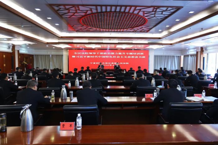 4月16日至19日,自治区高级人民法院举办全区法院领导干部政治能力提升专题培训班暨习近平新时代中国特色社会主义思想读书班,强调要巩固拓展主题教育成果,全面系统学习习近平新时代中国特色社会主义思想,运用好贯穿其中的立场观点方法,不断提升领导干部的政治判断力、政治领悟力、政治执行力。