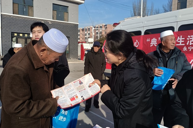 永宁县人民法院李俊法庭联合刑事审判庭走进李俊镇王团中心村,开展“宪法宣传进乡村,移风易俗树新风”活动,重点解读农村土地承包、婚姻家庭等典型案例,宣讲整治高价彩礼等陋习,引导村民树立“办事依法、遇事找法”的法治思维,倡导文明新风。