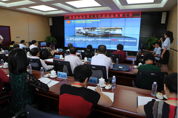 代表团先后参观了自治区高级法院执行指挥中心、“12368”诉讼服务热线、诉讼服务中心、远程视频接访室,认真听取了自治区高级人民法院院长李彦凯对宁夏法院审判执行、队伍建设、司法公开、司法便民等方面工作做的情况介绍;并深入中、基层法院实地旁听了固原市中级人民法院刑事案件庭审,参观了西吉法院“便民服务流动法庭车”巡回审判工作和专业化合议庭工作;详细了解了青铜峡市法院“庭、站、点、员”四位一体便民诉讼服务、同心县法院“哈吉”调解室、“夕阳红”调解队和盐池县法院“法官村官双助理”等多元化矛盾纠纷化解机制;参观了吴忠市中级人民法院执行大厅、法治文化长廊和银川市兴庆区法院诉讼服务大厅等。