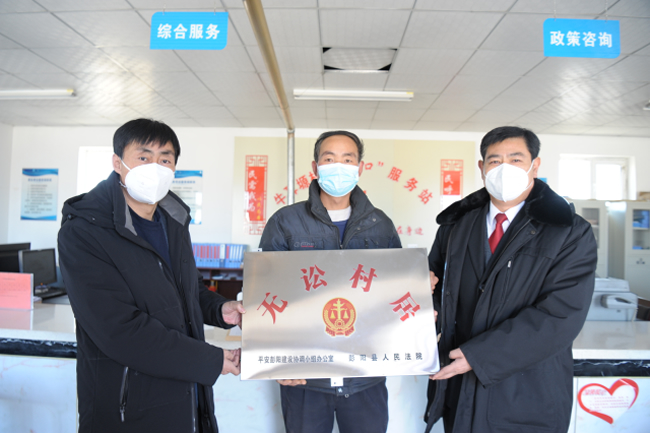本网讯(孙彦龙)为进一步坚持和发展新时代“枫桥经验”,推动构建共建共治共享社会治理格局,12月21日,平安彭阳建设协调小组办公室、彭阳县法院联合为彭阳县古城镇王大户村、孟塬乡牛塬村、小岔乡柳湾村三个首批“无讼村居”授牌。彭阳县委政法委副书记赵银汉、县法院党组副书记、副院长武应龙等参加授牌仪式。