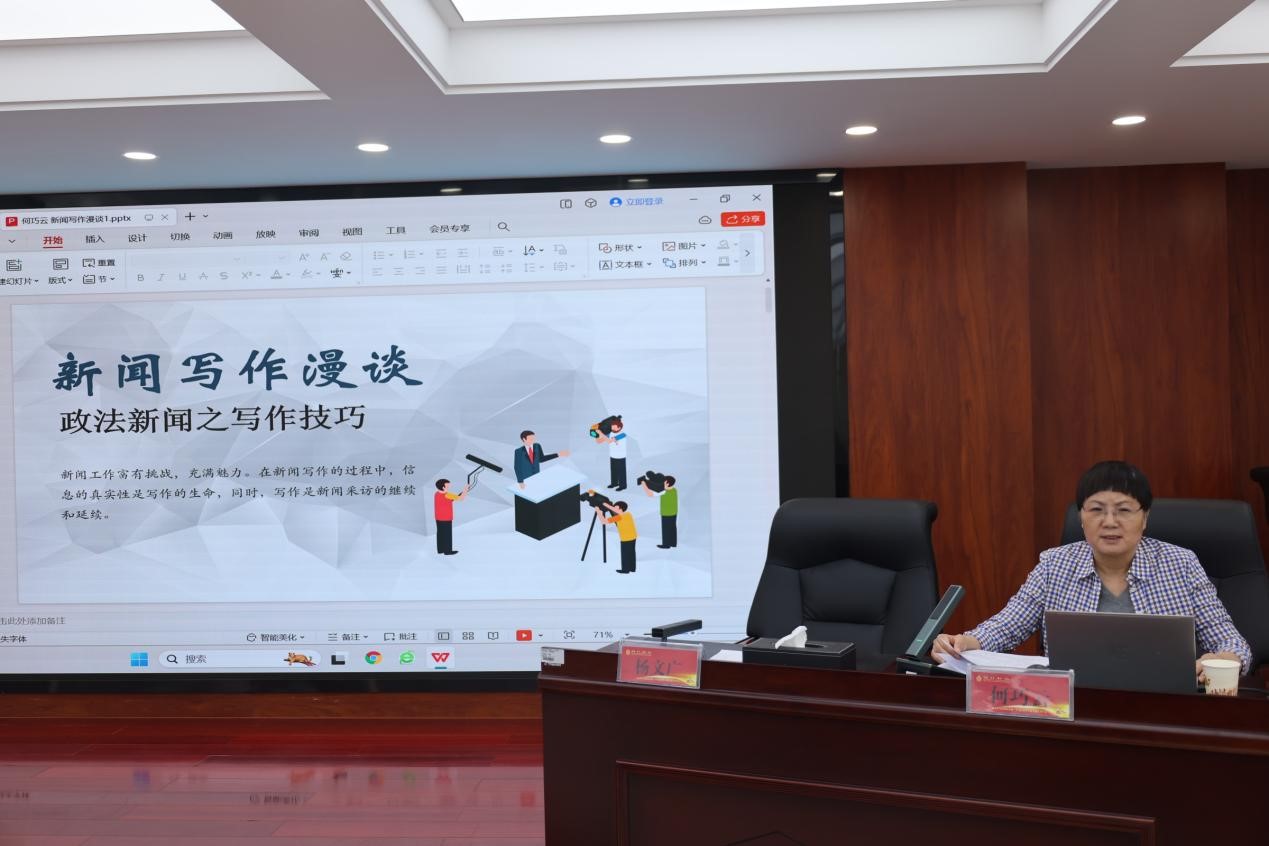 课上,何巧云以《新闻写作漫谈——政法新闻之写作技巧》为题,从新闻概述、消息的写作以及通讯的写作等三大方面入手,穿插大量生动的案例,全面聚焦法院信息选题挖掘、文字写作角度等内容,就如何撰写高质量信息稿件与干警们进行了一场干货满满的交流分享。