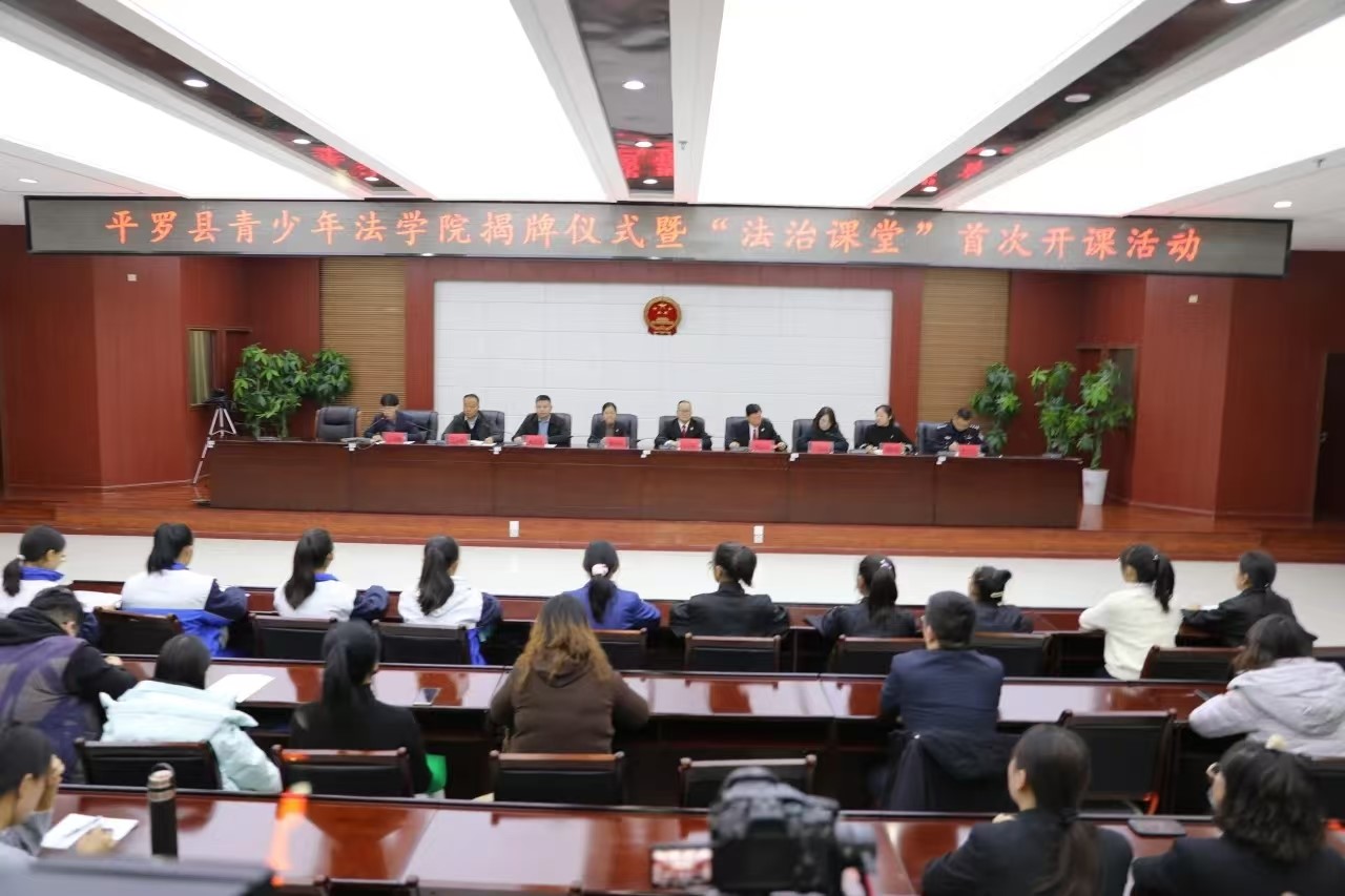 本网讯(邹佳圆)为深入推进青少年法治教育工作,有效预防和减少青少年违法犯罪、维护未成年人合法权益,12月4日上午,平罗县青少年法学院在平罗县人民法院揭牌成立。县委政法委、县法院、公安局、检察院、团县委、司法局、教体局相关领导及各中小学校长和学生代表60余人参加了揭牌仪式。